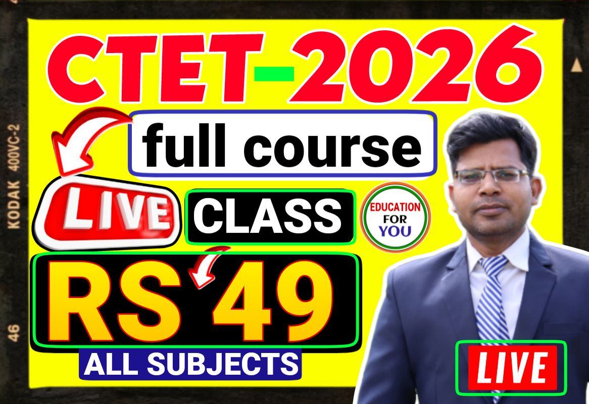 ₹49 में CTET 2026 ब्रह्मास्त्र FULL COURSE | All Subjects | Live Classes | सबसे सस्ता और बेस्ट कोर्स CTET 2026 ब्रह्मास्त्र Full Course एक ऐसा प्रीमियम और रिज़ल्ट-ओरिएंटेड बैच है, जिसे खास तौर पर नए पैटर्न और नए सिलेबस को ध्यान में रखकर तैयार किया गया है। यह कोर्स आपको Zero से Advance Level तक ले जाकर CTET 2026 में गैरेंटीड सफलता दिलाने के लिए डिजाइन किया गया है। इस ब्रह्मास्त्र कोर्स में आपको मिलेगा — 🔹 Live Classes जहाँ आप लाइव कमेंट में अपने doubts तुरंत पूछ सकेंगे। 🔹 हर Topic की Complete Theory Explanation, ताकि बेस मजबूत हो सके। 🔹 New Pattern वाले 1200+ New Questions, जो CTET 2026 में आने का सबसे ज्यादा चांस रखते हैं। 🔹 पिछले वर्षों के PYQs का Analysis, ताकि Exam की Mindset समझ सकें। 🔹 हर क्लास के साथ PDF + Practice Sheet, जिससे लगातार Revision बना रहे। 🔹 Mega Test & Full-Length Mock Tests, जो Exam जैसी फील देंगे। 🔹 CDP, Maths, EVS, Hindi, English, SST, — सभी Subjects की Live Classes एक ही कोर्स में। 🔹 Teaching Aptitude, Child Development, Bloom's Taxonomy, Inclusive Education—सबकुछ कवर। 🔹 Full Mentorship + Strategy Sessions, जिससे आपका हर दिन Productive बनेगा। 🔹 यह कोर्स CTET की तैयारी को इतना सरल बना देगा कि आप आराम से पहली बार में CTET Qualify कर सकें।